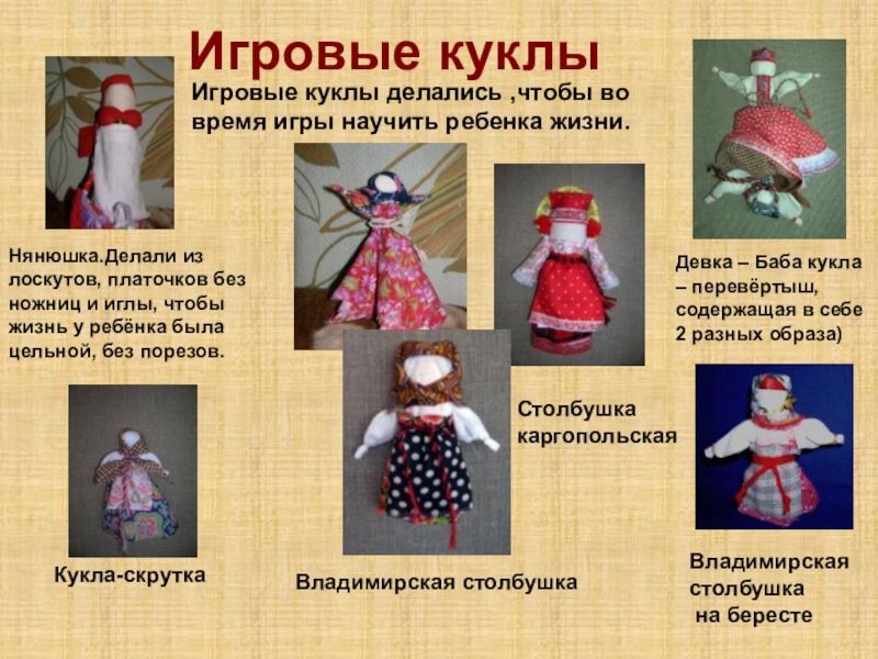 Игровые куклы делались ,чтобы во время игры научить ребенка жизни.