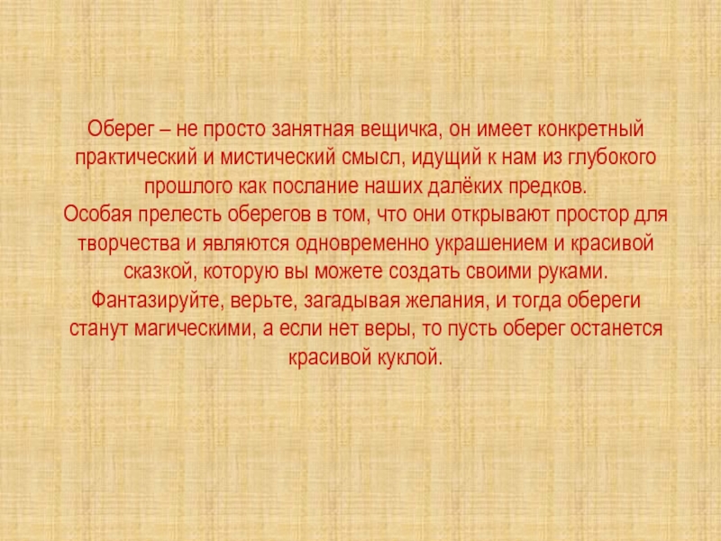 Оберег – не просто занятная вещичка, он имеет конкретный практический и