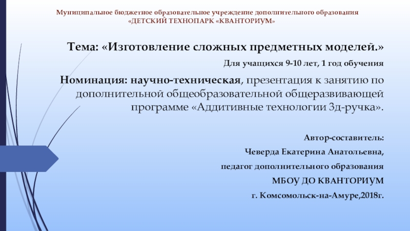 Номинация: научно-техническая, презентация к занятию по дополнительной общеобразовательной общеразвивающей программе «Аддитивные технологии 3д-ручка».