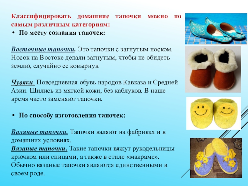Тапочками могут послужить и ШЛЕПАНЦЫ. Тапочками-шлепанцами в быту называют все тапочки без задника, потому что они «шлепают».