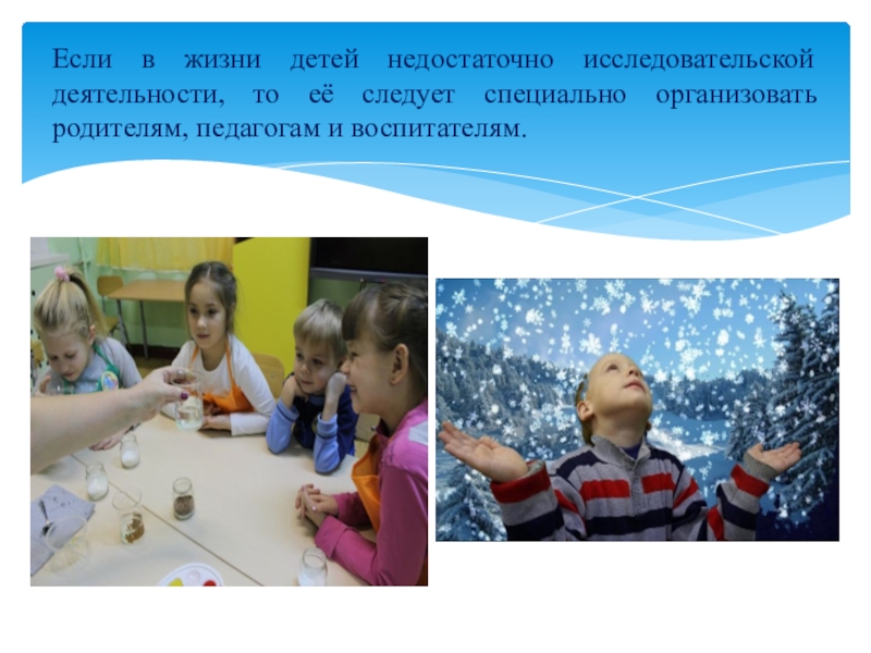 Слайд 3Если в жизни детей недостаточно исследовательской деятельности, то её следует специально