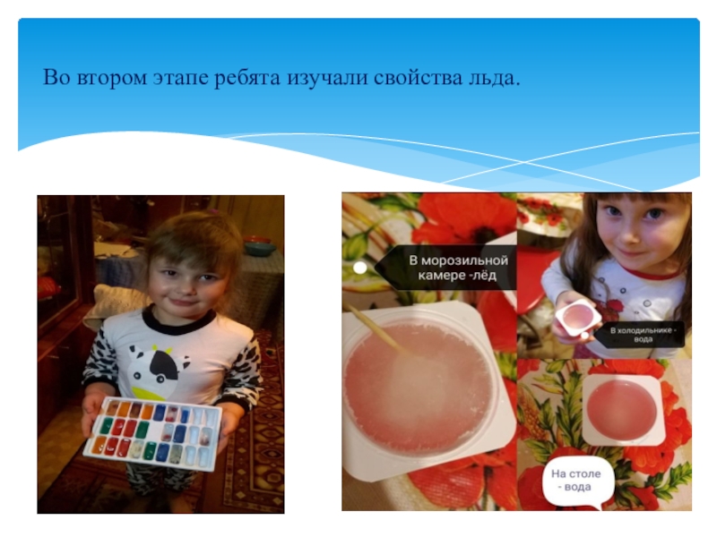 Слайд 11Во втором этапе ребята изучали свойства льда.