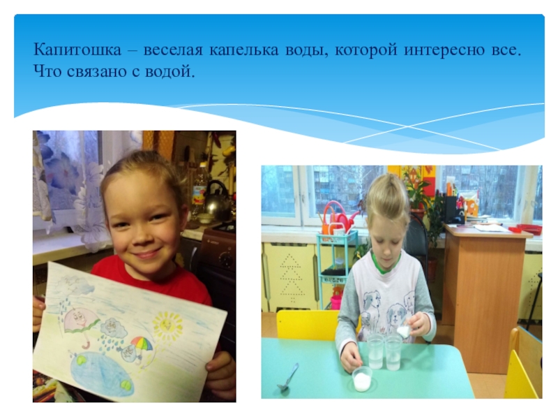 Слайд 9Капитошка – веселая капелька воды, которой интересно все. Что связано с