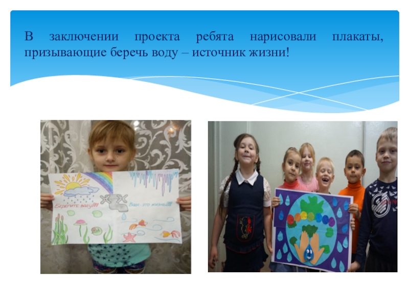 В заключении проекта ребята нарисовали плакаты, призывающие беречь воду – источник жизни!