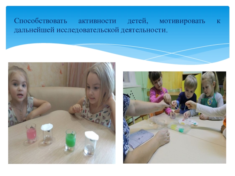 Слайд 6Способствовать активности детей, мотивировать к дальнейшей исследовательской деятельности.