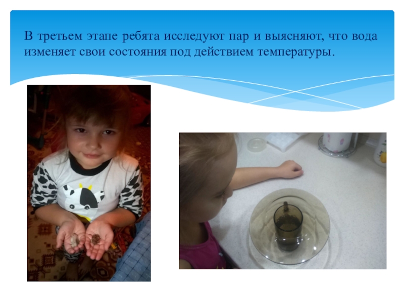Слайд 12В третьем этапе ребята исследуют пар и выясняют, что вода изменяет
