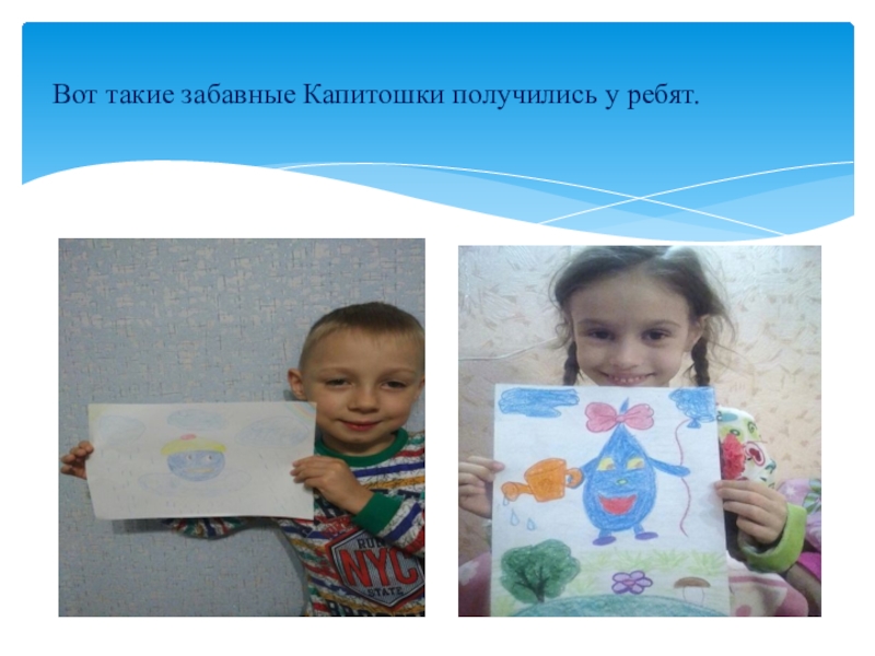 Слайд 10Вот такие забавные Капитошки получились у ребят.