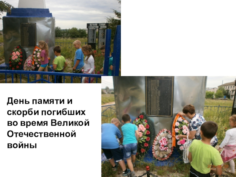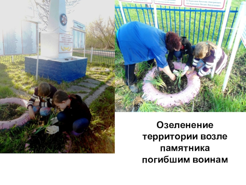 Слайд 29Озеленение территории возле памятника погибшим воинам