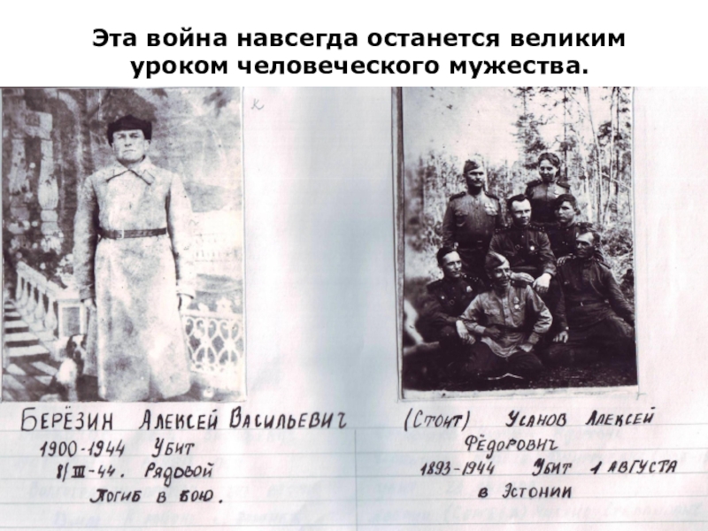 Слайд 14Эта война навсегда останется великим уроком человеческого мужества.