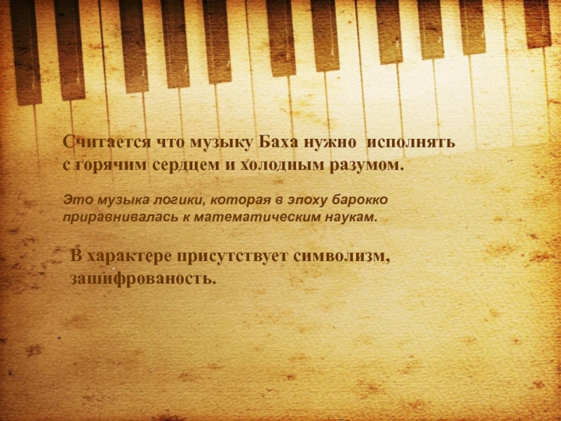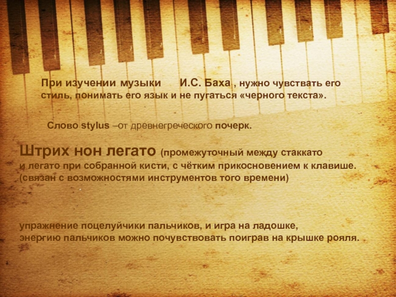 При изучении музыки И.С. Баха , нужно чувствать его стиль, понимать его язык и не пугаться «черного текста».