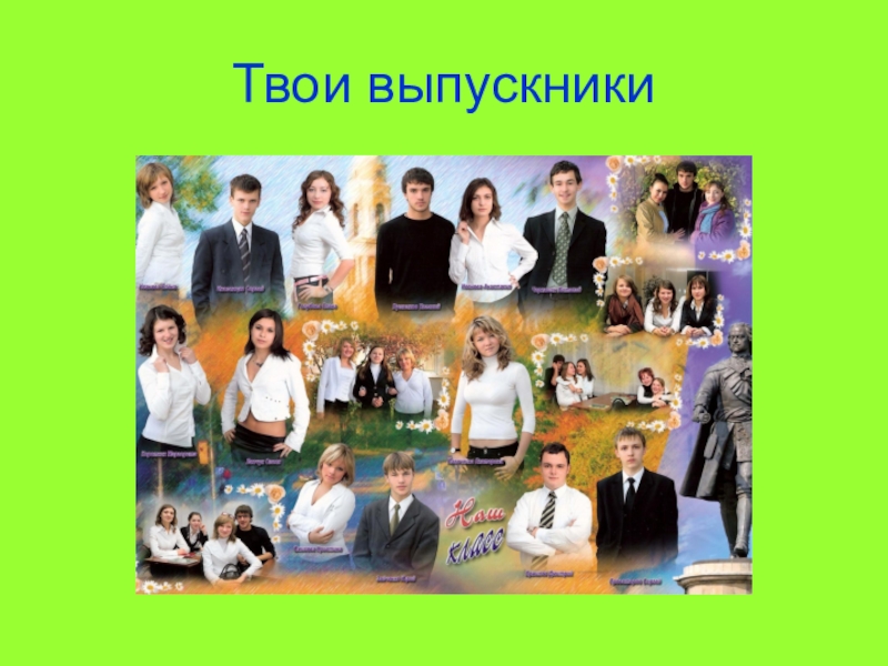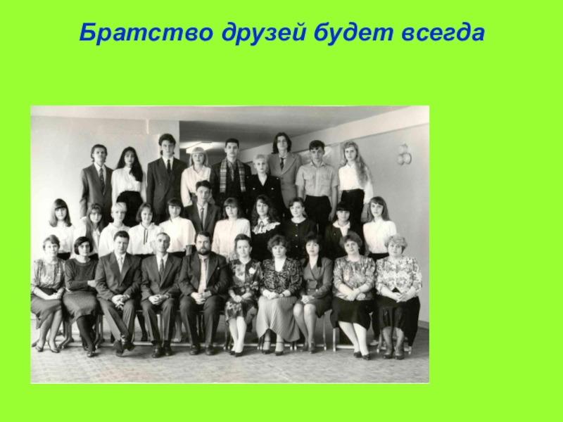 В нашей школе звенит звонок и мелодия всем знакома. Школьных лет пролетит поток и тогда, может быть, поймем мы,что без школы прожить нам нельзя: это мы на большой фотографии. В школе жизнь и твоя и