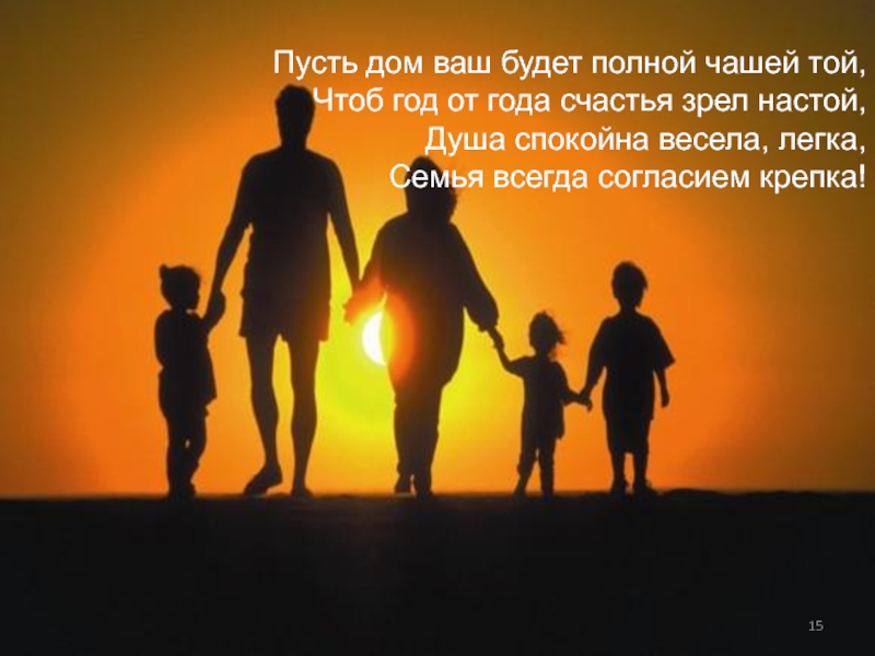 Слайд 15Пусть дом ваш будет полной чашей той, Чтоб год от года