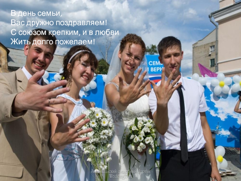 Слайд 4В день семьи, Вас дружно поздравляем! С союзом крепким, и в любви Жить долго