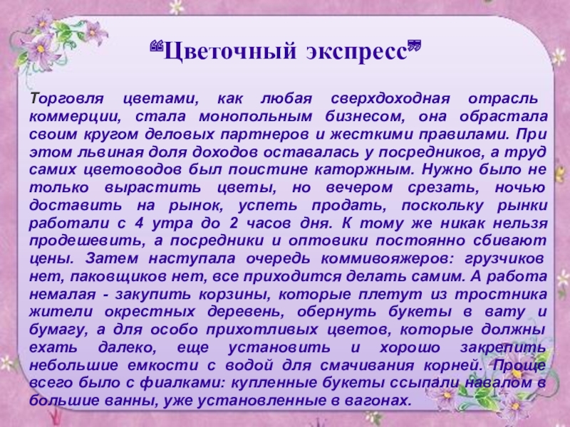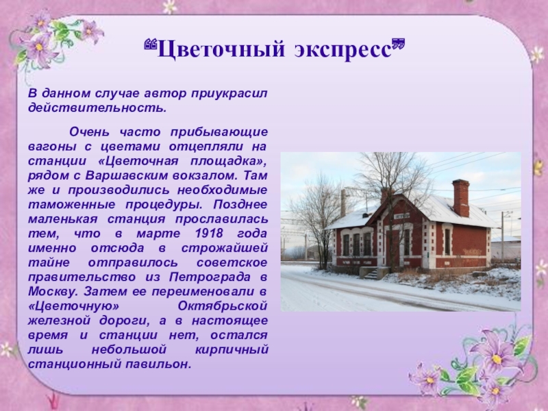 Слайд 19Вообще, словосочетание «цветочный экспресс», которым сегодня пользуются некоторые историки, скорее является