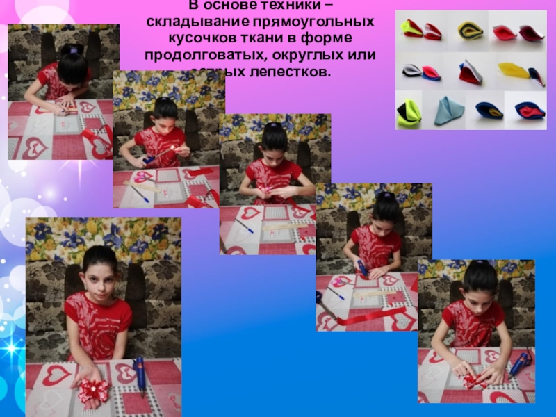 Для изготовления изделий в технике «Канзаши» необходимо овладеть разными способами складывания кусочков ленты в форме продолговатых, округлых или острых лепестков;