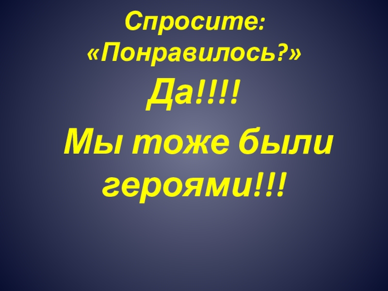 Спросите: «Понравилось?»Да!!!! Мы тоже были героями!!!