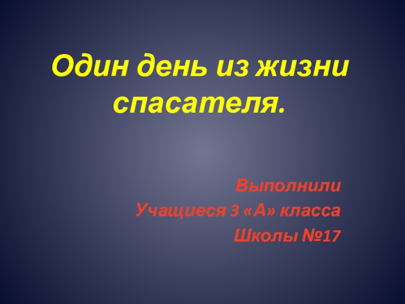 Один день из жизни спасателя.ВыполнилиУчащиеся 3 «А» классаШколы №17