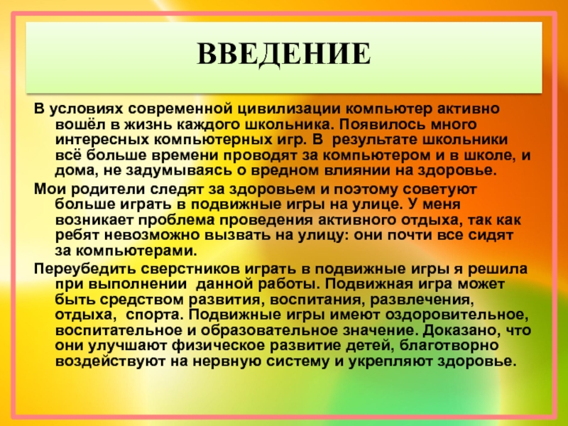 Влияние подвижных и компьютерных игр на здоровье детей.