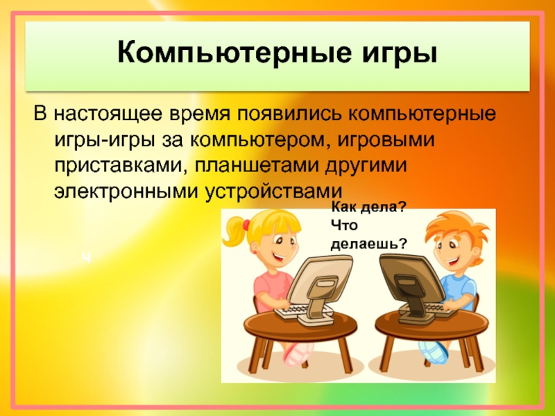 В настоящее время появились компьютерные игры-игры за компьютером, игровыми приставками,