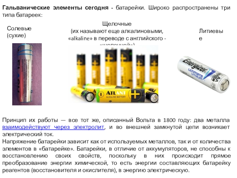 (их называют еще алкалиновыми, «alkaline» в переводе с английского - «щелочной»)