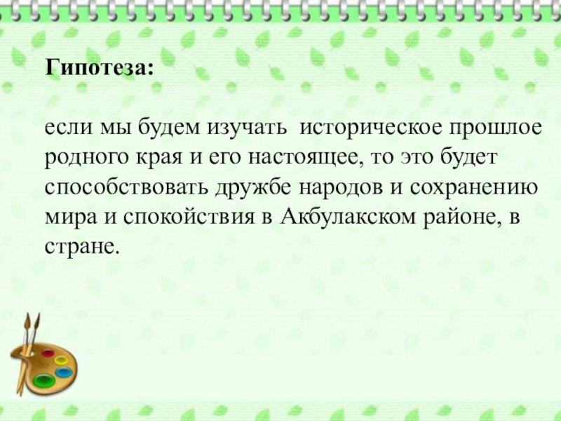 Гипотеза: если мы будем изучать историческое прошлое родного края и его настоящее, то это будет способствовать дружбе