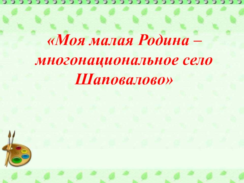 Слайд 1«Моя малая Родина – многонациональное село Шаповалово»