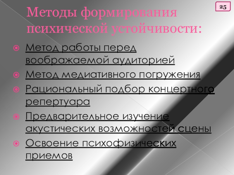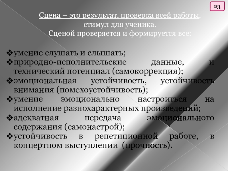 устойчивость в репетиционной работе, в концертном выступлении (прочность).