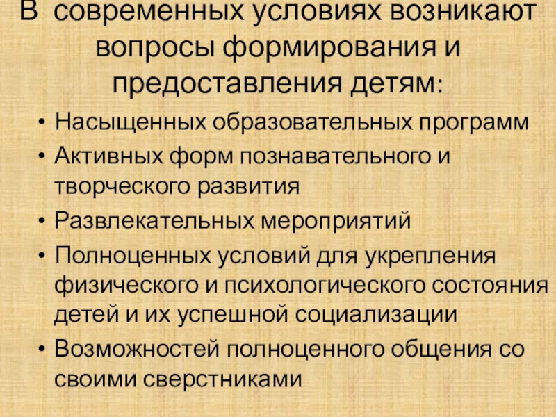 Слайд 3В современных условиях возникают вопросы формирования и предоставления детям: