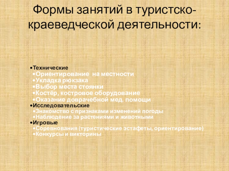 Слайд 20Формы занятий в туристско-краеведческой деятельности: