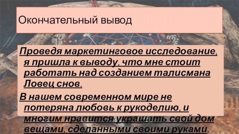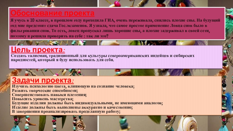 Создать талисман, традиционный для культуры североамериканских индейцев и сибирских народностей, который я буду использовать для себя.