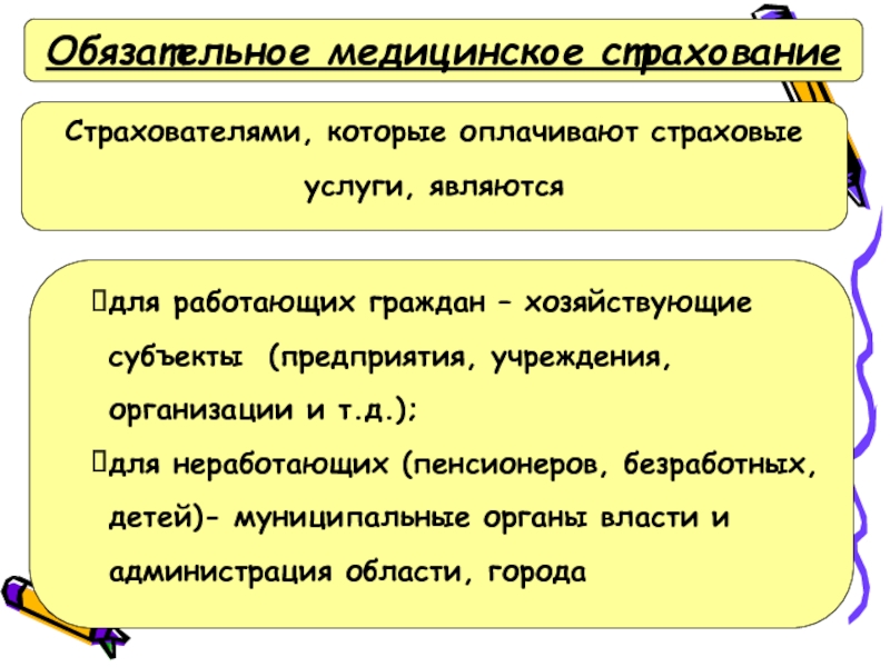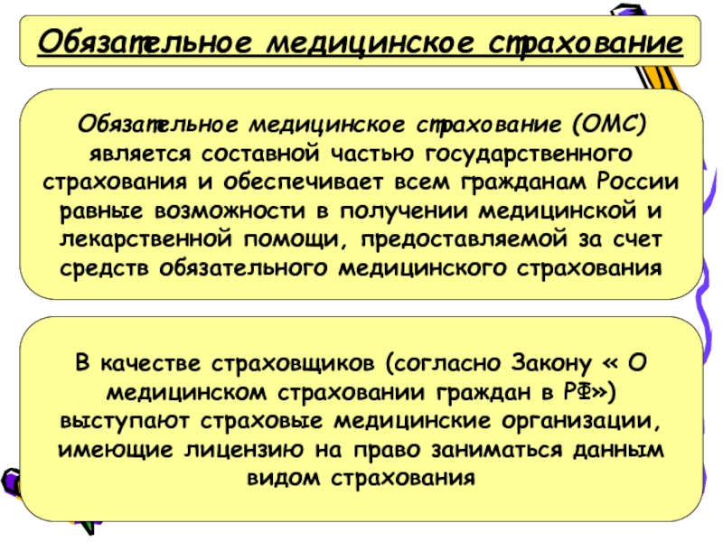 В качестве страховщиков (согласно Закону « О медицинском страховании граждан в РФ») выступают страховые медицинские организации, имеющие лицензию на право заниматься данным видом страхования