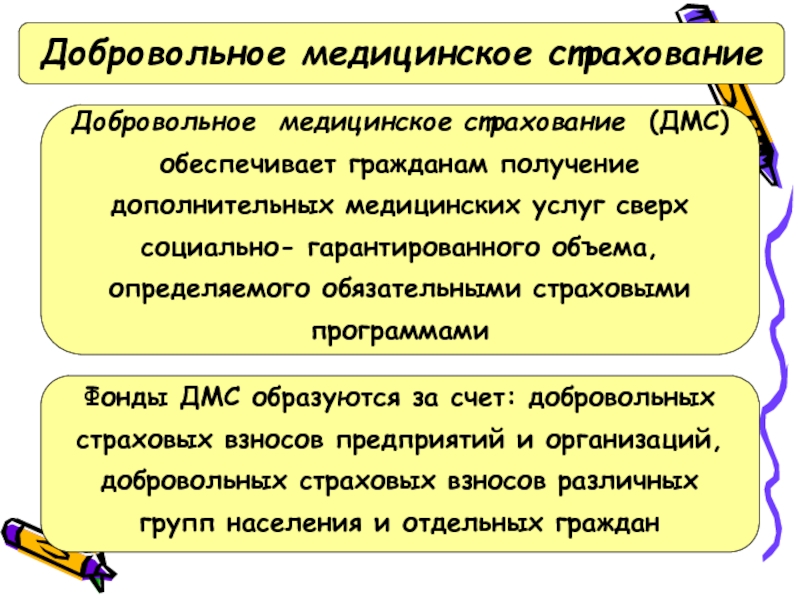 Фонды ДМС образуются за счет: добровольных страховых взносов предприятий и организаций, добровольных страховых взносов различных групп населения и отдельных граждан
