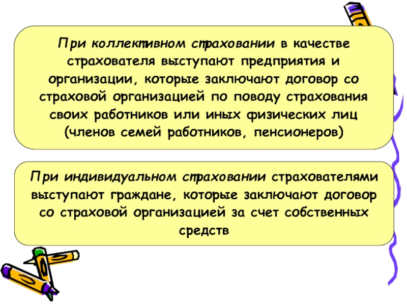 При индивидуальном страховании страхователями выступают граждане, которые заключают договор со страховой организацией за счет собственных средств