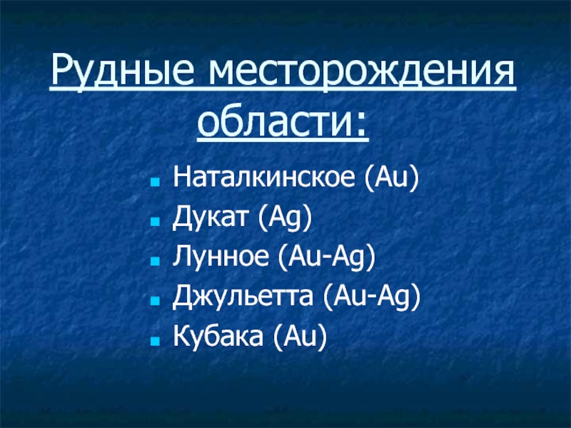 Слайд 12Рудные месторождения области: