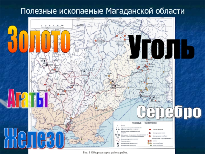Полезные ископаемые Магаданской областиЗолото Серебро Уголь Железо Агаты