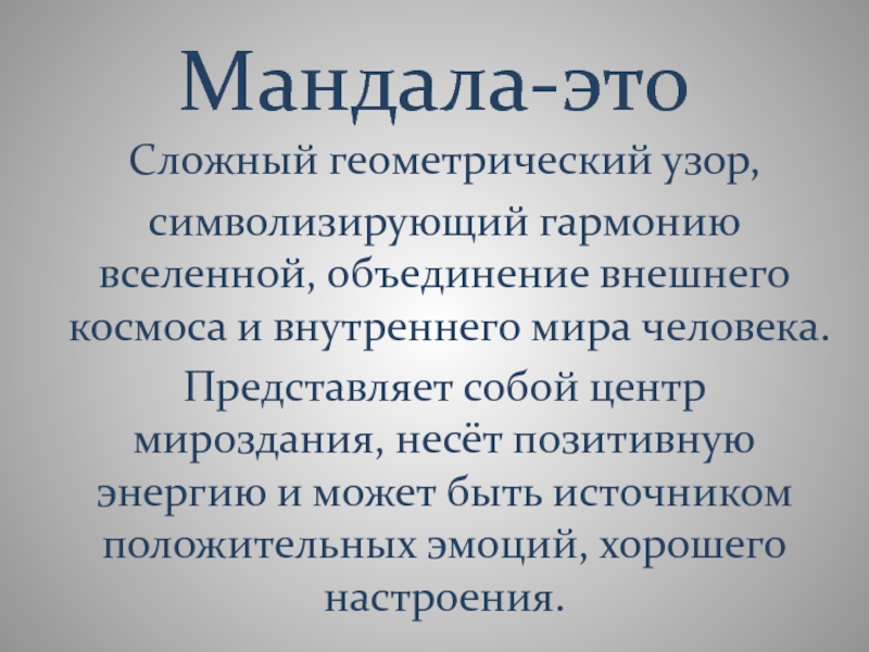 Презентация, доклад к уроку Мандала- как источник позитивной энергии