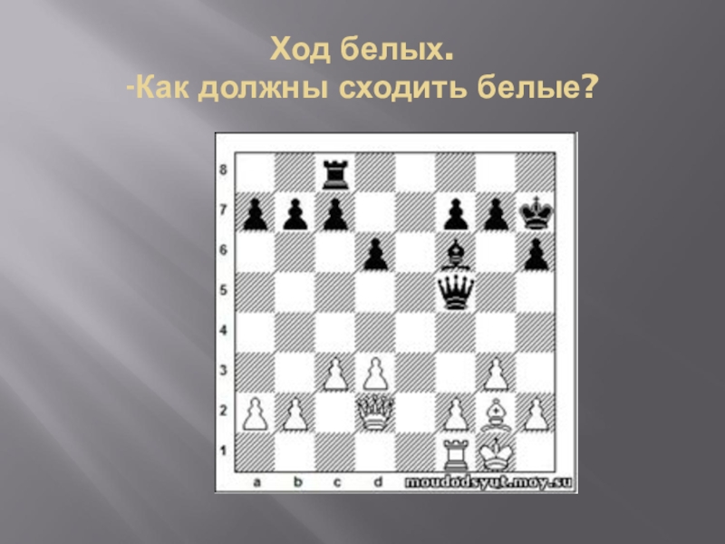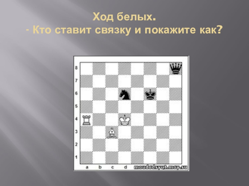 Слайд 19Ход белых. - Кто ставит связку и покажите как?