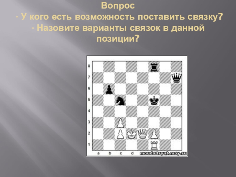 Вопрос - У кого есть возможность поставить связку? - Назовите варианты связок в данной позиции?