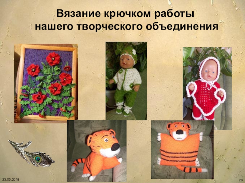 Слайд 26Вязание крючком работы нашего творческого объединения