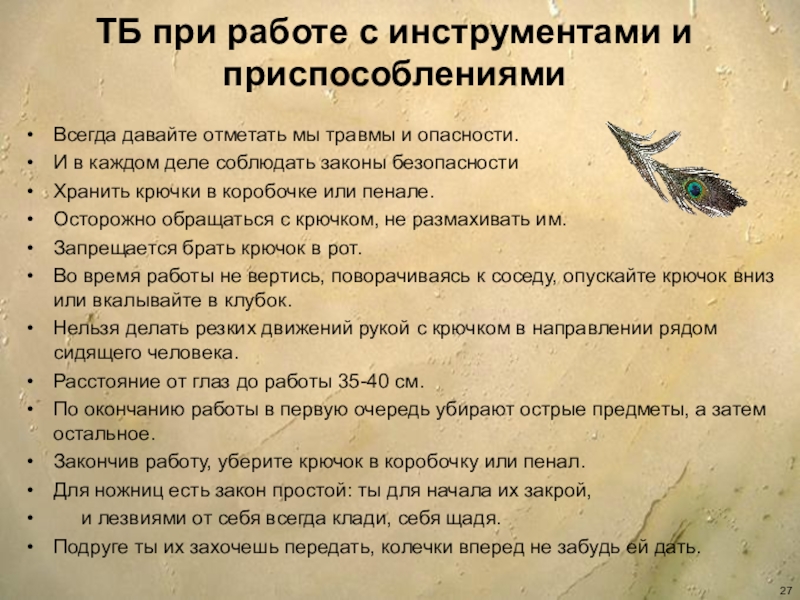 Слайд 27 ТБ при работе с инструментами и приспособлениями