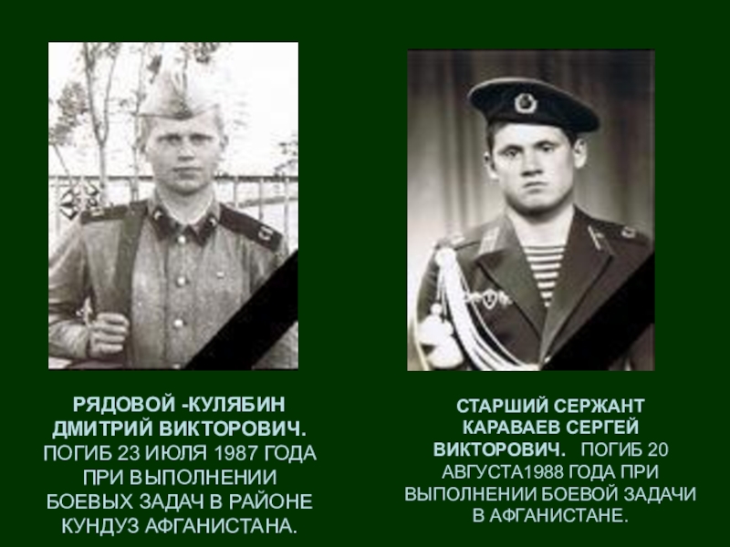 СТАРШИЙ СЕРЖАНТ КАРАВАЕВ СЕРГЕЙ ВИКТОРОВИЧ. ПОГИБ 20 АВГУСТА1988 ГОДА ПРИ ВЫПОЛНЕНИИ БОЕВОЙ ЗАДАЧИ В АФГАНИСТАНЕ.