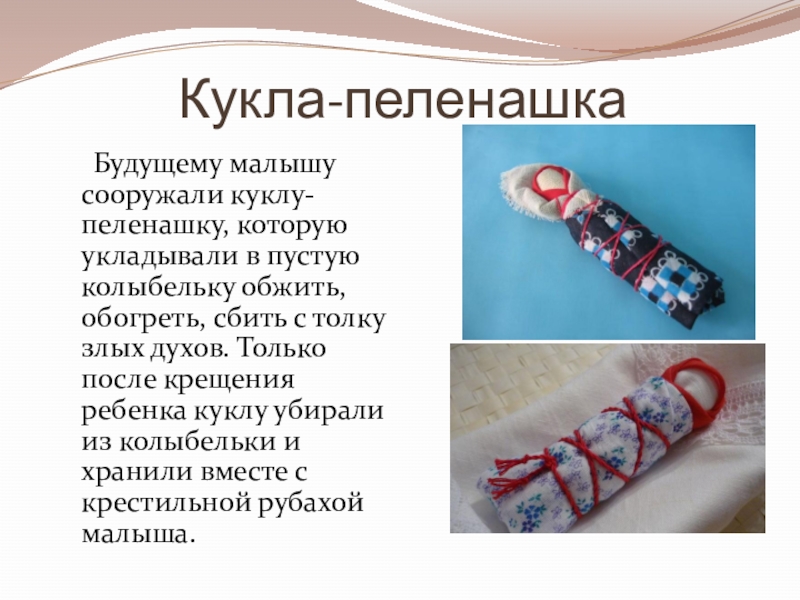 Слайд 20Мастер-класс по изготовлению куклы «Пеленашки»