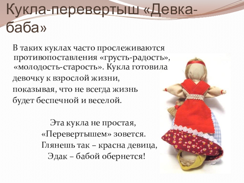 Слайд 14Кукла-перевертыш «Девка-баба»