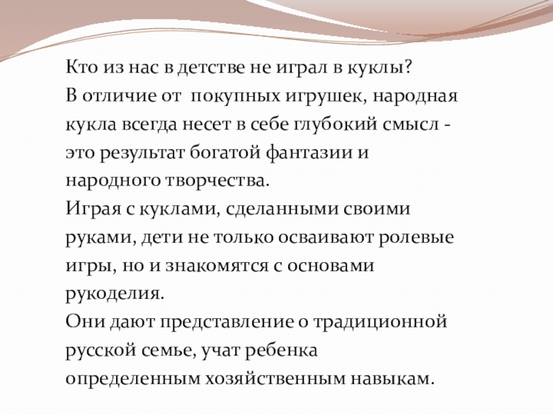 Слайд 5Кто из нас в детстве не играл в куклы?
