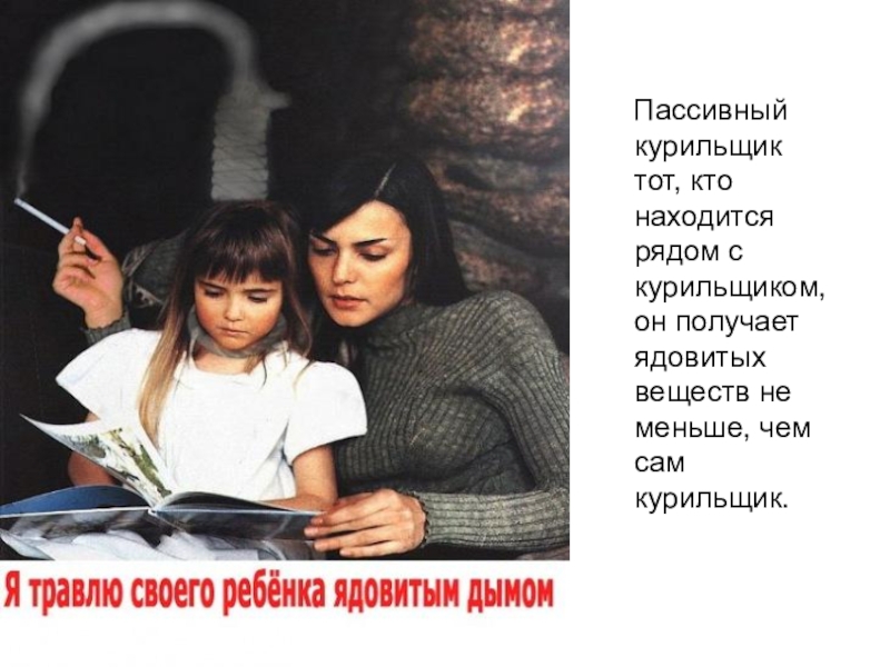 Пассивный курильщик тот, кто находится рядом с курильщиком, он получает ядовитых веществ не меньше, чем
