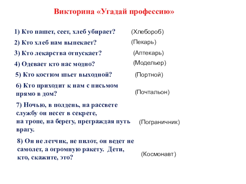 8) Он не летчик, не пилот, он ведет не самолет, а огромную ракету. Дети, кто, скажите, это?