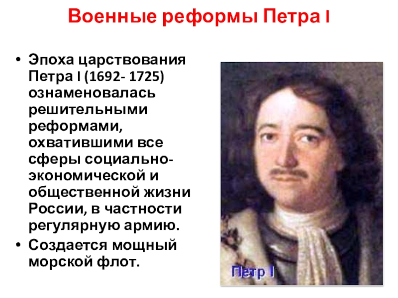 Эпоха царствования Петра I (1692- 1725) ознаменовалась решительными