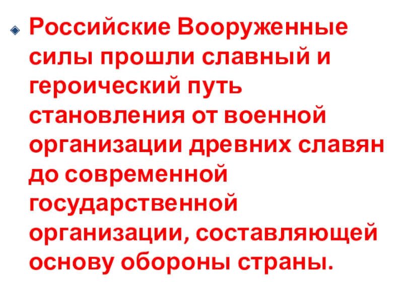 Слайд 23Российские Вооруженные силы прошли славный и героический путь становления от военной