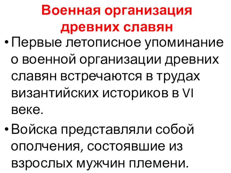организации древних славян до современной государственной организации, составляющей основу обороны страны.
