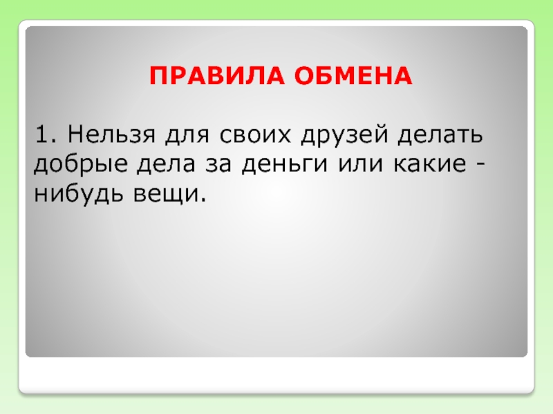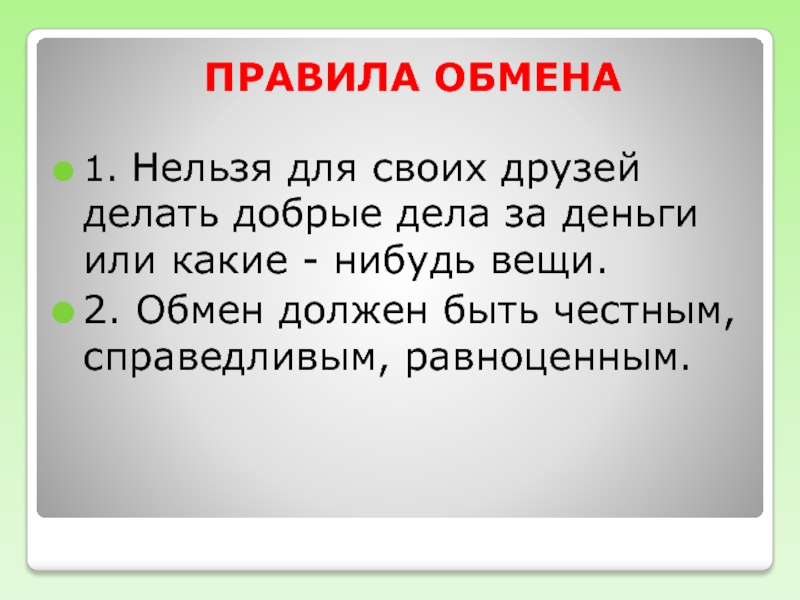 ПРАВИЛА ОБМЕНА1. Нельзя для своих друзей делать добрые дела за деньги или какие - нибудь вещи.
